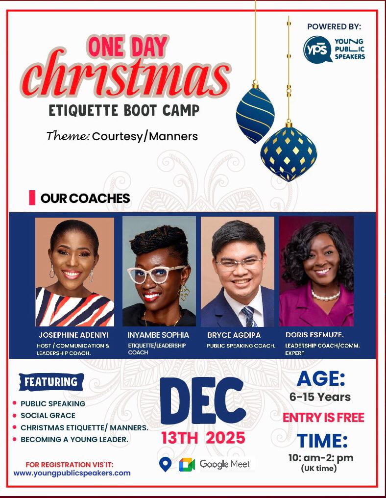 This Christmas, we’re hosting a transformational one-day Boot Camp designed to help young people grow in confidence, communication, and character β€” all from the comfort of home.